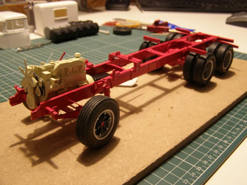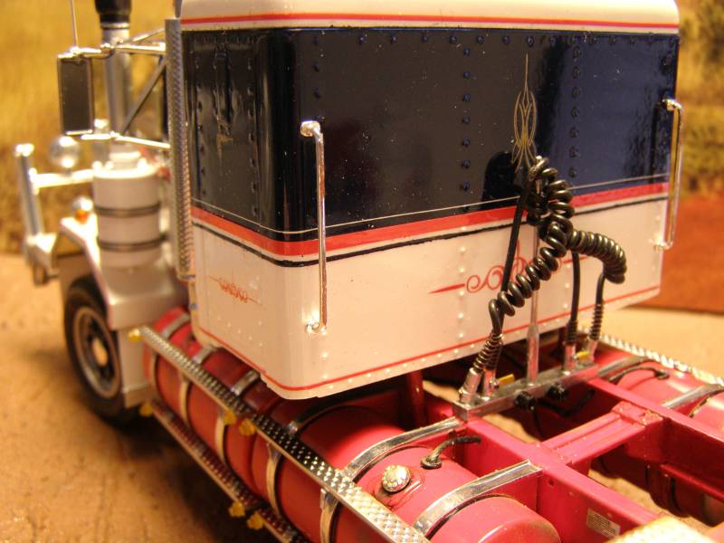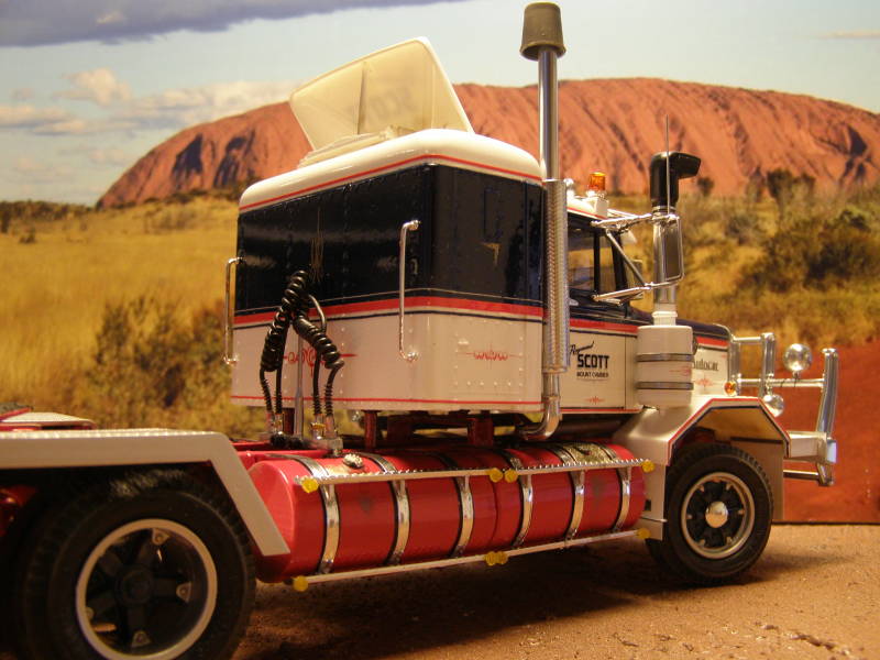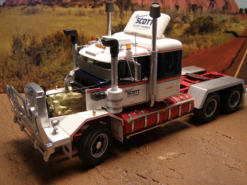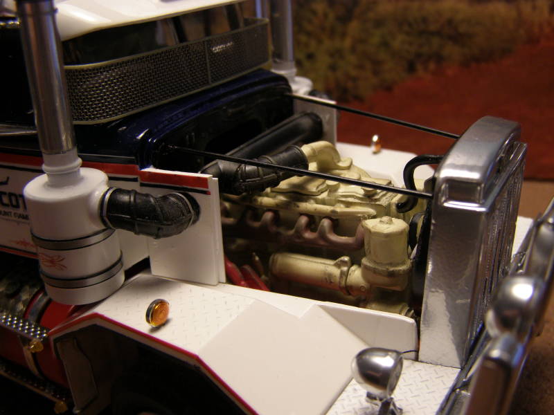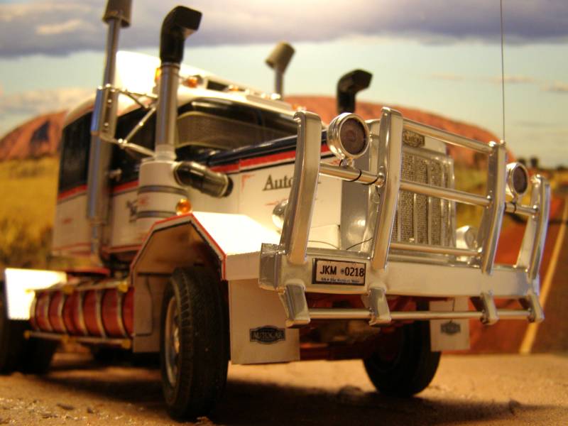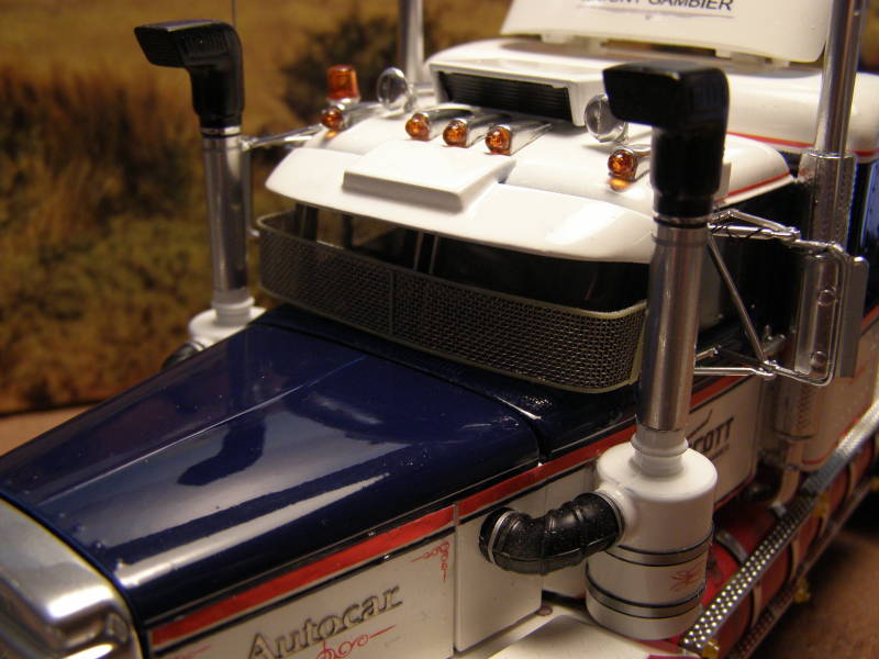 Used most of the original parts of the kit, except of Auslowe RHD Dash, Auslowe sunvisor, Photo Etch 'Autocar' signs, sleeper from an AMT Kenworth, parts from the sparesbox and a little scratchbuild.