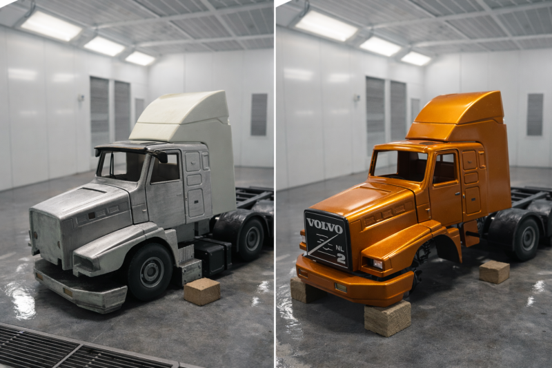Combined a Conrad/ NZG Volvo NL12 4x2 cab with a 8x4 chassis from a Lion Toys Volvo NH.